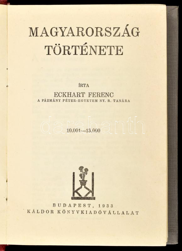 Eckhart Ferenc: Magyarország története. Bp., 1933, Káldor, 324+(1) p. ... https://www.darabanth.com/de/445-Fernauktion/445.0/Bucher/Bucher-Geschichte~1500010/Eckhart-Ferenc-Magyarorszag-tortenete-Bp-1933-Kaldor-324plus1-p-Bibliofil-kiadas-Kiadoi~II2936604