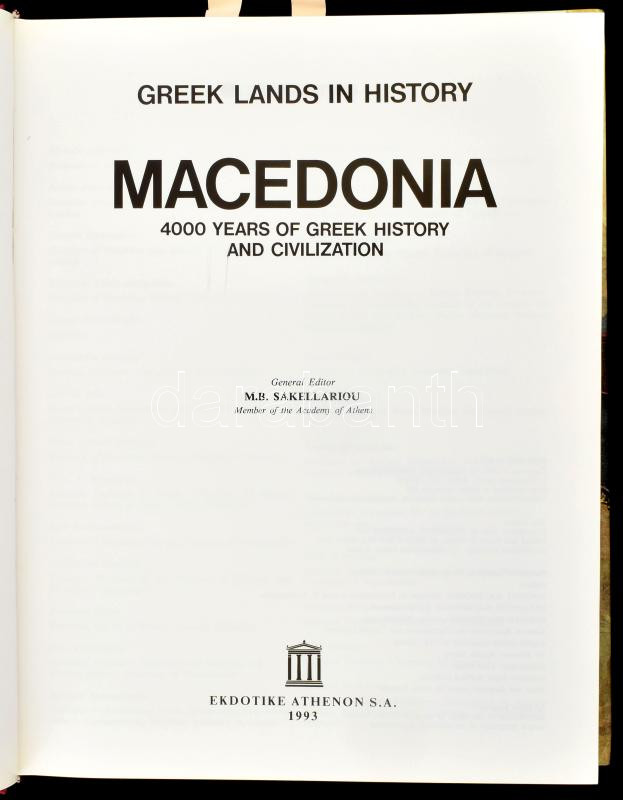 Macedonia. 4000 years of greek history and civilization. Greek lands in history. Szerk.: M. B. Sakellariou. Athen, 1993., Ekdotike Athenon S. A. Angol nyelven. Gazdag képanyaggal illusztrált. Kiadói egészműbőr-kötés, kiadói papír védőborítóban.