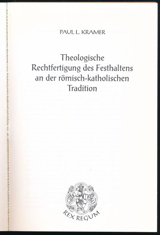 Paul L. Kramer: Theologische Rechtfertigung des Festhaltens an der röm... https://www.darabanth.com/de/445-Fernauktion/445.0/Bucher/Bucher-Religion~1500023/Paul-L-Kramer-Theologische-Rechtfertigung-des-Festhaltens-an-der-romisch-katholischen-Tradition-~II2943893