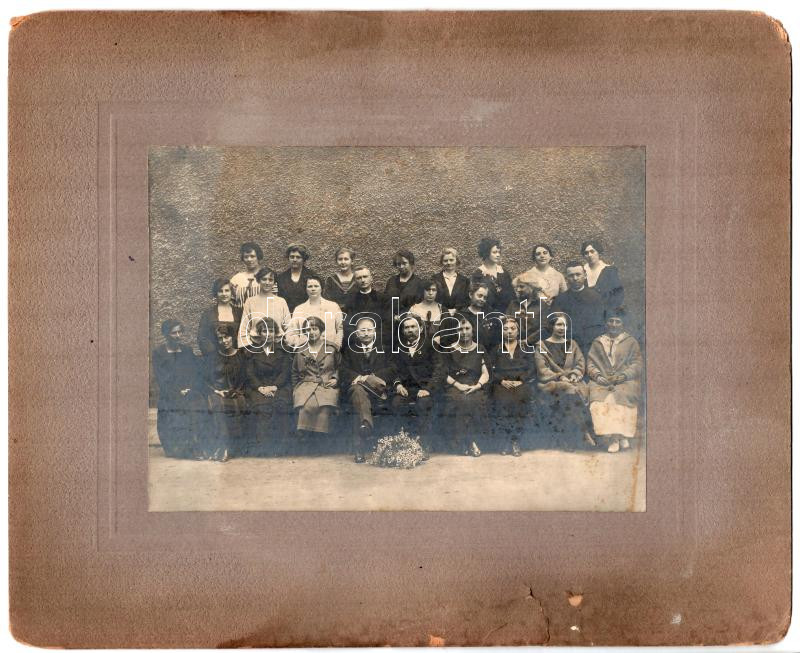 Beschreibung: 1923 Csoportkép, nagyméretű, kartonra kasírozott fotó, a hátoldalon datálva, aláírásokkal, a karton sérült, 16x21,5 cm