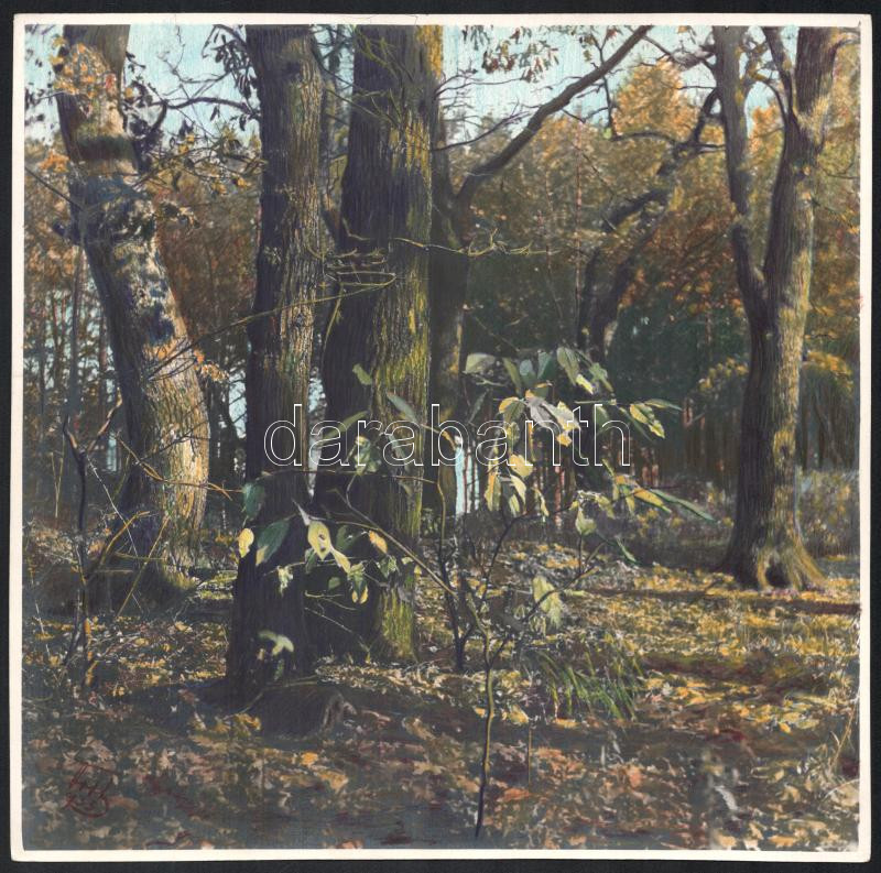 Beschreibung: Tóth Gyula (1891-1970): Őszi erdő, 1933. Színezett fotó, papír, jelezve balra lent, 24x24 cm