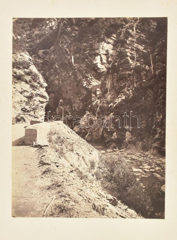 cca 1890 Erdély, Békás-szoros a Békás-patakkal, nagyméretű, kartonra kasírozott fotó, 24,5x18,5 cm / Cheile Bicazului, Râul Bicaz, large-size photo, 24.5x18.5 cm