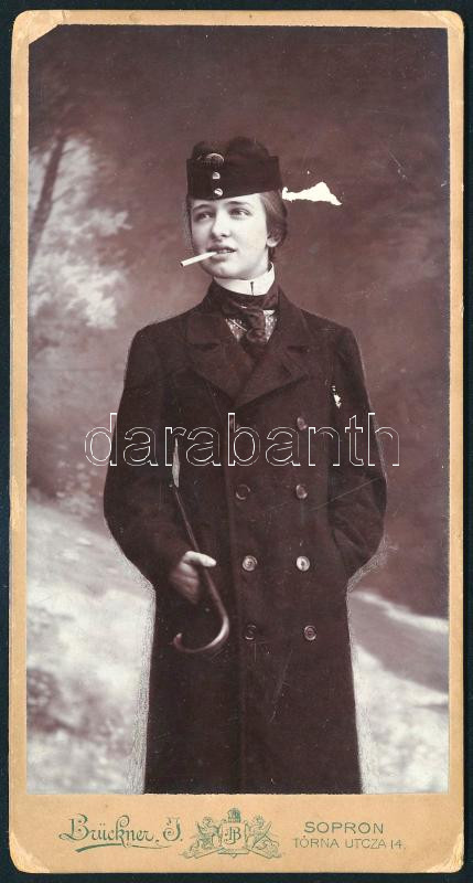 cca 1910 Vagány hölgy portréja, keményhátú fotó Brückner J. soproni mű... https://www.darabanth.com/de/445-Fernauktion/445.0/Fotografie/Foto~500023/cca-1910-Vagany-holgy-portreja-kemenyhatu-foto-Bruckner-J-soproni-mutermebol-a-felule~II2941148