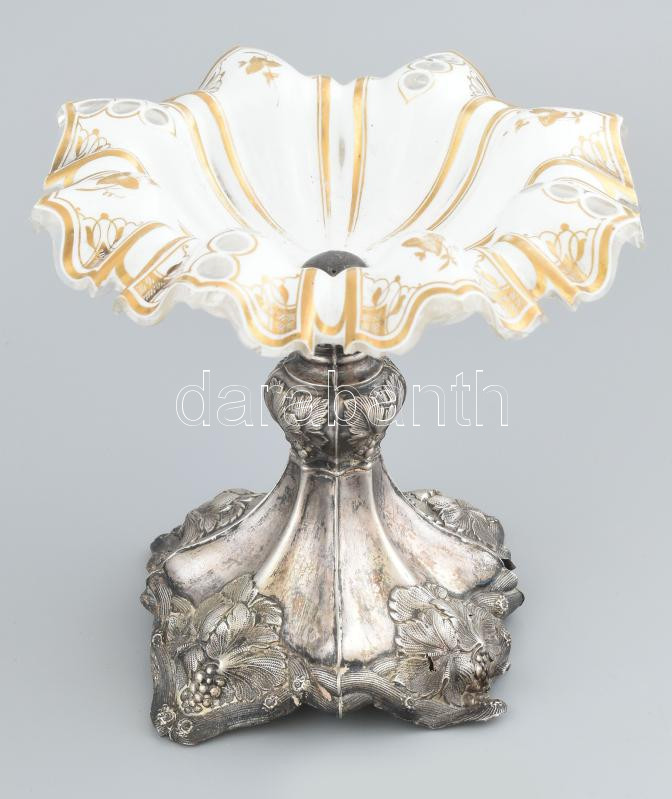 Ezüst (Ag) talpú, biedermeier kínáló, sérült talp, sérült üveg, inog, ... https://www.darabanth.com/de/445-Fernauktion/445.0/Juwellen-und-Kunstobjekte-aus-Edelmetall/Juwellen-und-Kunstobjekte-aus-Edelmetall~1500029/Ezust-Ag-talpu-biedermeier-kinalo-serult-talp-serult-uveg-inog-jelzett-toltott-t~II2945515