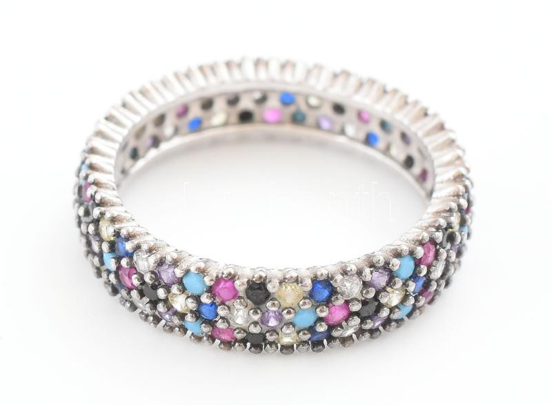 Beschreibung: Ezüst(Ag) gyűrű színes kövekkel gazdagon kirakva, jelzett, méret: 55, bruttó: 3,1 g