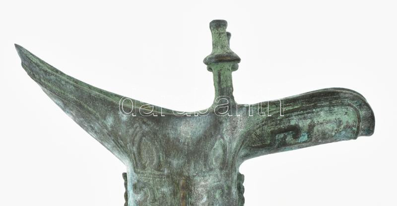 Beschreibung: Antik bronz A Jue edény. Az a jue edény borivásra szolgáló kínai szertartási edény. Szép állapotban, jelzés nélkül, m: 14 cm