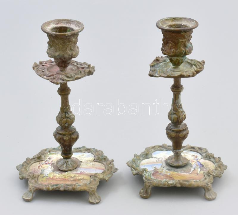 Antik bronz gyertyatartó pár, porcelán kép berakással, sérült, m: 17 c... https://www.darabanth.com/de/445-Fernauktion/445.0/Kunst-Dokumente-andere-Sammelgebiete/Antik~500008/Antik-bronz-gyertyatarto-par-porcelan-kep-berakassal-serult-m-17-cm~II2944379