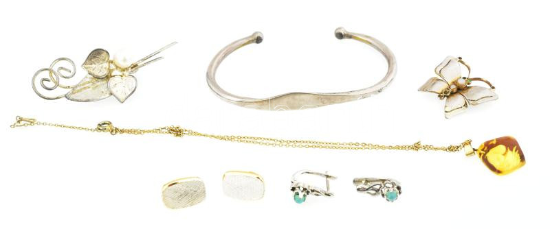 Beschreibung: Vegyes bizsu tétel, kitűző, mandzsettagomb, nyaklánc, fülbevaló, karperec