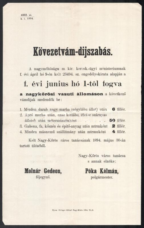 1894 Kövezetvám díjszabás hirdetménye 21x34 cm https://www.darabanth.com/de/445-Fernauktion/445.0/Kunst-Dokumente-andere-Sammelgebiete/Drucksachen~1500005/1894-Kovezetvam-dijszabas-hirdetmenye-21x34-cm~II2942404