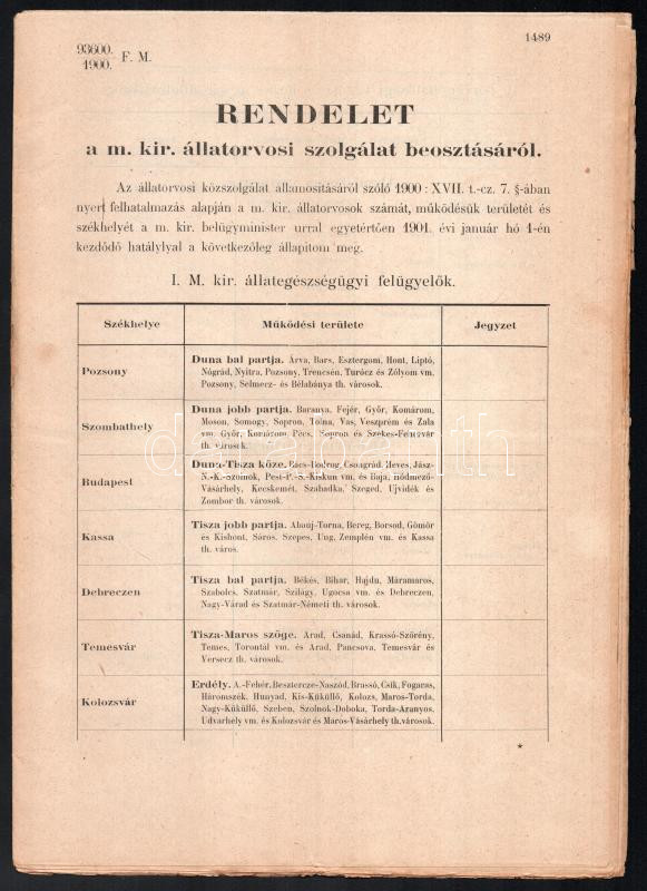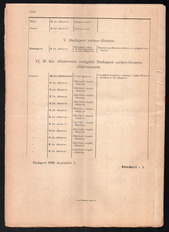 1900 Budapest Rendelet a m. kir. állatorvosi szolgálat beosztásáról. 2... https://www.darabanth.com/de/445-Fernauktion/445.0/Kunst-Dokumente-andere-Sammelgebiete/Drucksachen~1500005/1900-Budapest-Rendelet-a-m-kir-allatorvosi-szolgalat-beosztasarol-28-p~II2941271