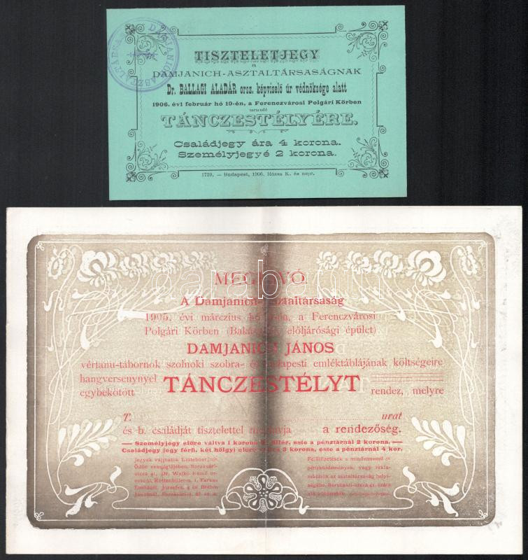 1905, 1906 A Damjanich asztaltársaság meghívója és belépő jegye az ara... https://www.darabanth.com/de/445-Fernauktion/445.0/Kunst-Dokumente-andere-Sammelgebiete/Drucksachen~1500005/1905-1906-A-Damjanich-asztaltarsasag-meghivoja-es-belepo-jegye-az-aradi-vertanu-tabornok-~II2941254