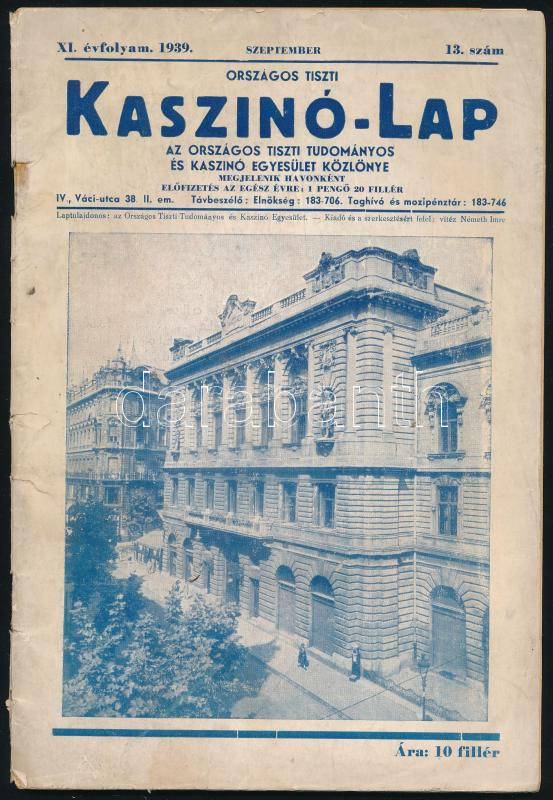 1939 Országos Tiszti Kaszinó-lap. XI. évf. 1939. 13. sz. Foltos, szaka... https://www.darabanth.com/de/445-Fernauktion/445.0/Kunst-Dokumente-andere-Sammelgebiete/Drucksachen~1500005/1939-Orszagos-Tiszti-Kaszino-lap-XI-evf-1939-13-sz-Foltos-szakadt-boritoval-lapok-sarka~II2944690