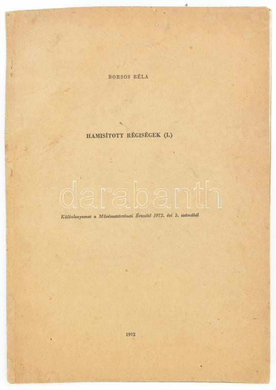 1972 Borsos Béla: Hamisított régiségek. Aláírt példány. Különlenyomat ... https://www.darabanth.com/de/445-Fernauktion/445.0/Kunst-Dokumente-andere-Sammelgebiete/Drucksachen~1500005/1972-Borsos-Bela-Hamisitott-regisegek-Alairt-peldany-Kulonlenyomat-10p~II2937511