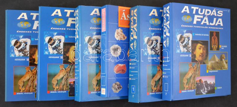 A Tudás Fája 5 kötete: Az emberi test, Világtörténelem, Állatok-növények, Földünk, Művészetek, eredeti kemény borítós albumtokokban + Ásványok kiadvány kemény borítós albumtokban