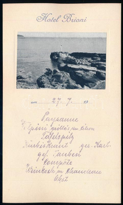 cca 1910 Pola, Hotel Brioni menükártya https://www.darabanth.com/de/445-Fernauktion/445.0/Kunst-Dokumente-andere-Sammelgebiete/Drucksachen~1500005/cca-1910-Pola-Hotel-Brioni-menukartya~II2942408