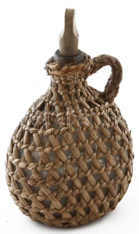Kis demizson, üveg, fonott borítással, fadugóval, cca 7 dl, m: 23 cm https://www.darabanth.com/de/445-Fernauktion/445.0/Kunst-Dokumente-andere-Sammelgebiete/Flohmarkt~500014/Kis-demizson-uveg-fonott-boritassal-fadugoval-cca-7-dl-m-23-cm~II2940144