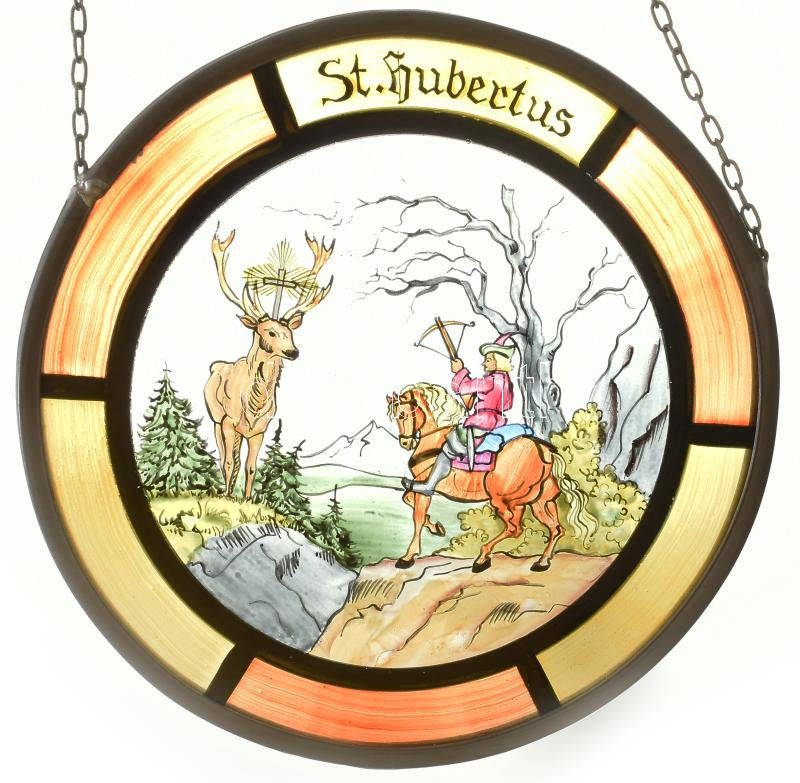 St. Hubertus festett üveg falidísz, fémkeretben, akasztólánccal, d: 18... https://www.darabanth.com/de/445-Fernauktion/445.0/Kunst-Dokumente-andere-Sammelgebiete/Flohmarkt~500014/St-Hubertus-festett-uveg-falidisz-femkeretben-akasztolanccal-d-18-5-cm~II2943678