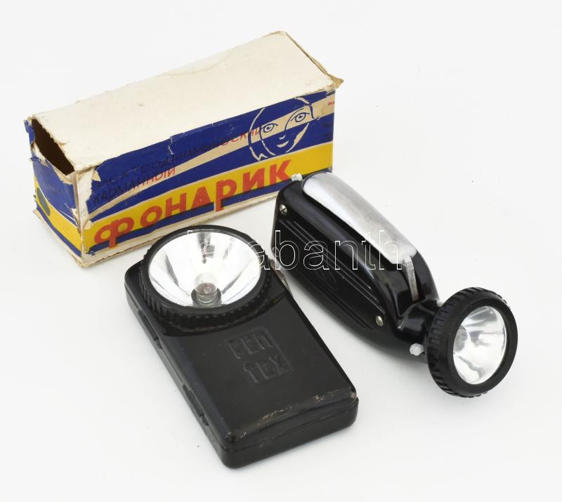 Beschreibung: Szovjet dinamós zseblámpa eredeti dobozában, működik, + FÉMTEX zseblápa