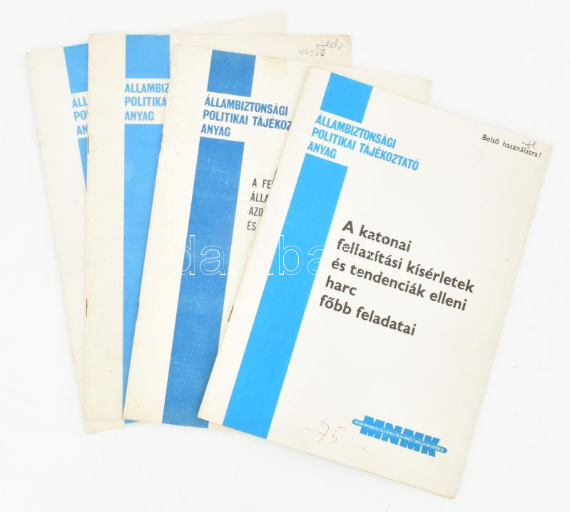 Állambiztonsági Politikai Tájékoztató Anyag 4 füzete. Bp.,1974-1975, MN Politikai Nevelőmunka Anyagi és Módszertani Központja. Kiadói papírkötések, kettő számozott, egyik csak "Belső használatra."