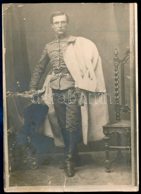 cca 1910 Huszártiszt egyenruhában, köpenyben, fotó, kisebb sérülésekke... https://www.darabanth.com/de/445-Fernauktion/445.0/Kunst-Dokumente-andere-Sammelgebiete/Militaria~1500001/cca-1910-Huszartiszt-egyenruhaban-kopenyben-foto-kisebb-serulesekkel-18x13-cm~II2940991