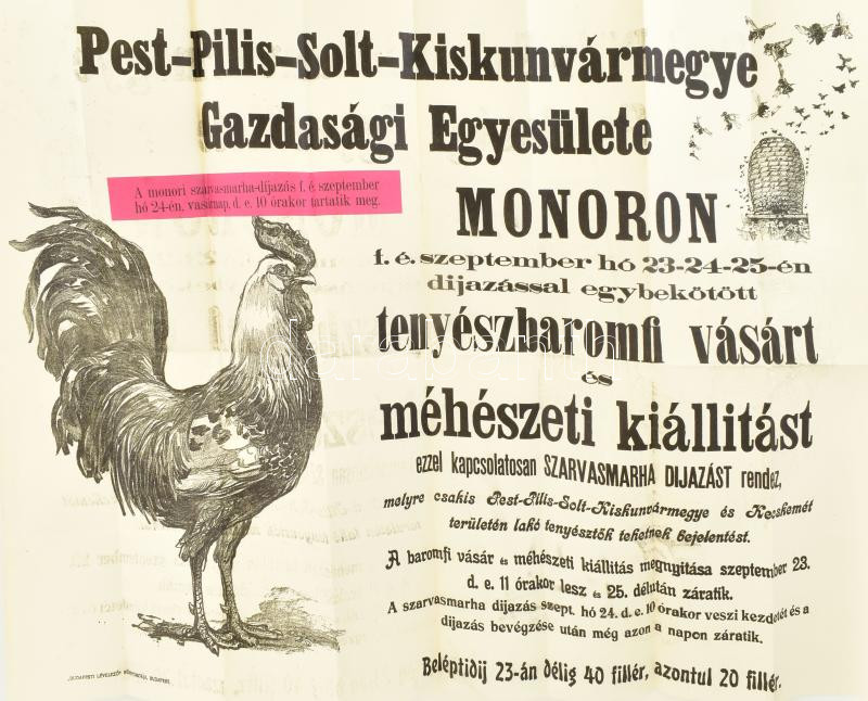 cca 1900 Monor tenyészbaromfi és méhészeti kiállítás Monoron. Kiállítá... https://www.darabanth.com/de/445-Fernauktion/445.0/Kunst-Dokumente-andere-Sammelgebiete/Plakat~1500006/cca-1900-Monor-tenyeszbaromfi-es-meheszeti-kiallitas-Monoron-Kiallitasi-plakat-Jo-alla~II2941020