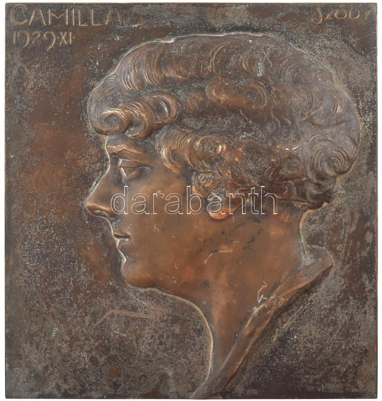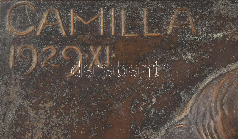 1929 Sződy Szilárd (1878-1939): Camilla 1929 XI. Bronz női portré, jelzéssel, kopással, 27x25 cm
