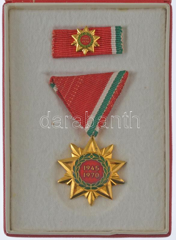 1970. "Felszabadulási Jubileumi Emlékérem" aranyozott, műgyantás bronz kitüntetés mellszalagon, miniatűrrel szalagsávon, igazolvánnyal, eredeti tokban T:AU NMK 712.