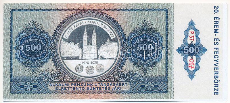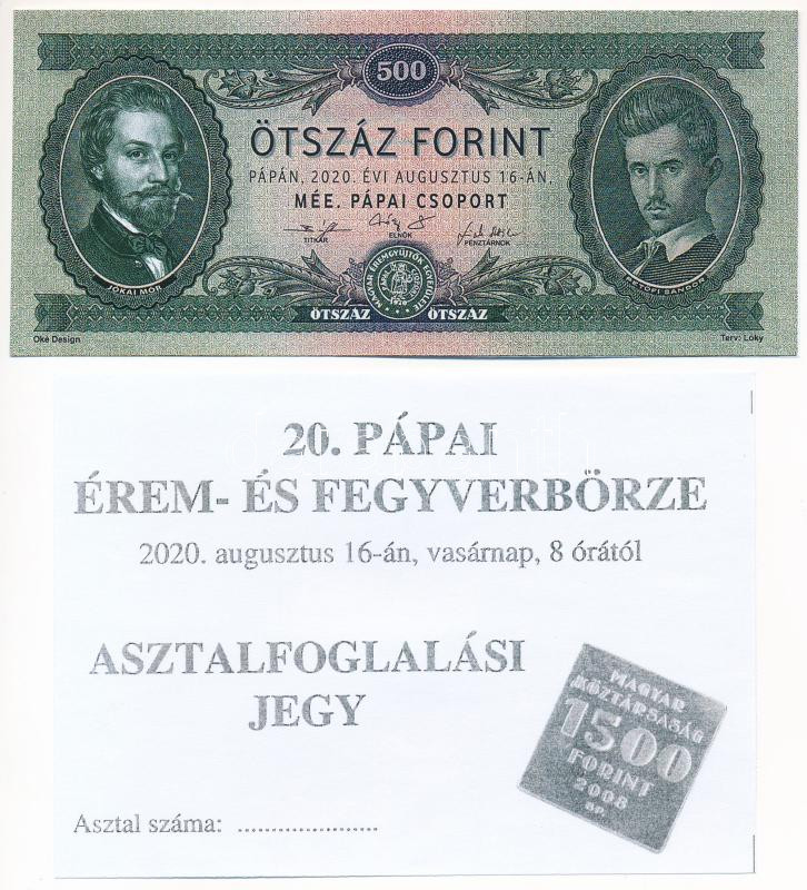 Beschreibung: Pápa 2020. augusztus 16. 500Ft "MÉE 20. Érem- és Fegyverbörze" alkalmi pénz + asztalfoglalási jegy, kitöltetlen T:UNC