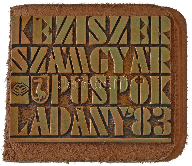 Beschreibung: 1983. "Kéziszerszámgyár - Püspökladány '83" egyoldalas bronz plakett bőr tokban (68x85mm) T:AU patina