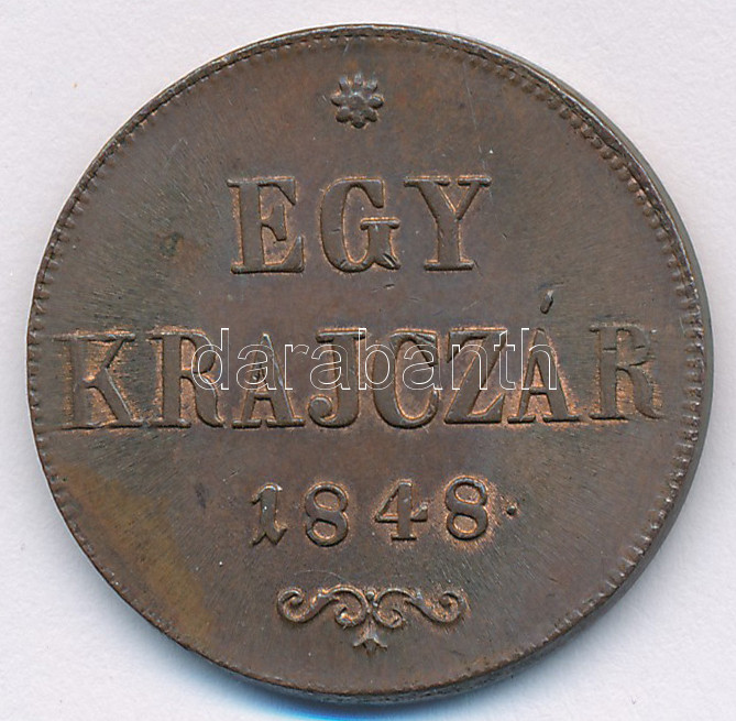 1848. 1kr Cu T:AU patina Adamo B1 https://www.darabanth.com/de/445-Fernauktion/445.0/Numismatik/Ungarische-Munzen-und-Munzen-mit-ungarischem-Munzzeichen~1000008/1848-1kr-Cu-TAU-patina-Adamo-B1~II2944333
