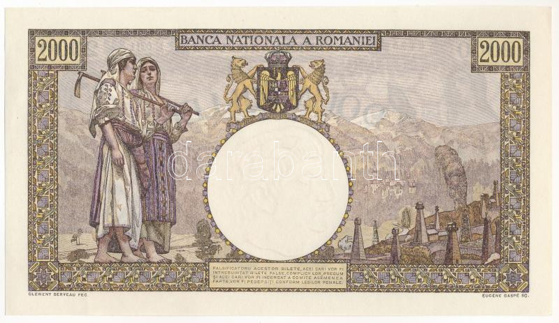 Beschreibung: Románia 1941. 2000L "0420 E.0211" T:UNC,AU