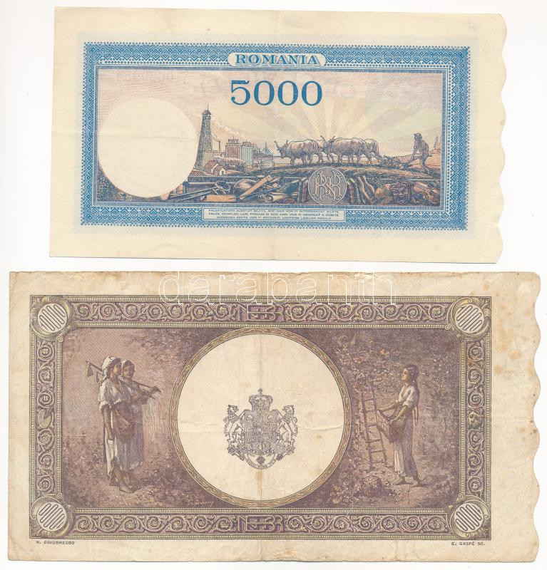 Beschreibung: Románia 1943. 5000L + 1945. 10.000L T:F