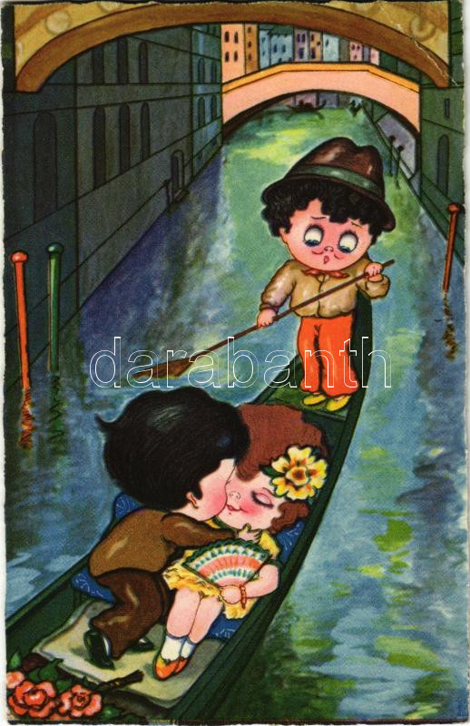 Children art postcard, romantic couple, kissing. Amag 0289. (EB) https://www.darabanth.com/de/446-Fernauktion/446.0/Ansichtskarten/Kinder~2000024/Children-art-postcard-romantic-couple-kissing-Amag-0289-EB~II2955040
