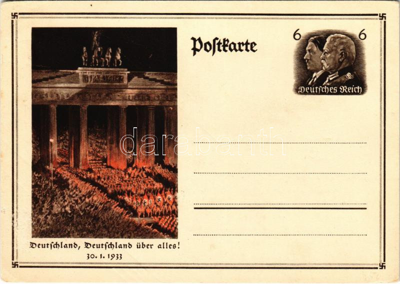 1933 Deutschland, Deutschland über alles! / Adolf Hitler sworn in as Chancellor of Germany by German President Paul von Hindenburg, NSDAP German Nazi Party propaganda, swastika, 6 Ga. (felületi sérülés / surface damage)