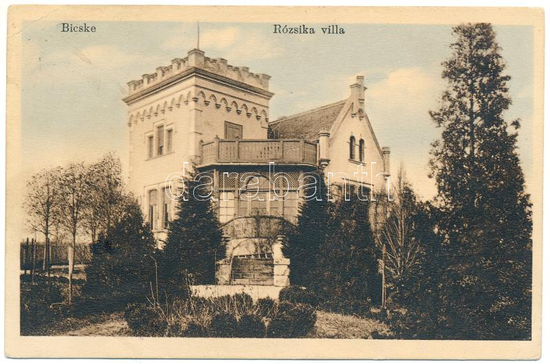 1913 Bicske, Rózsika villa (ázott / wet damage) https://www.darabanth.com/de/446-Fernauktion/446.0/Ansichtskarten/Ungarn~2000006/1913-Bicske-Rozsika-villa-azott-wet-damage~II2946446