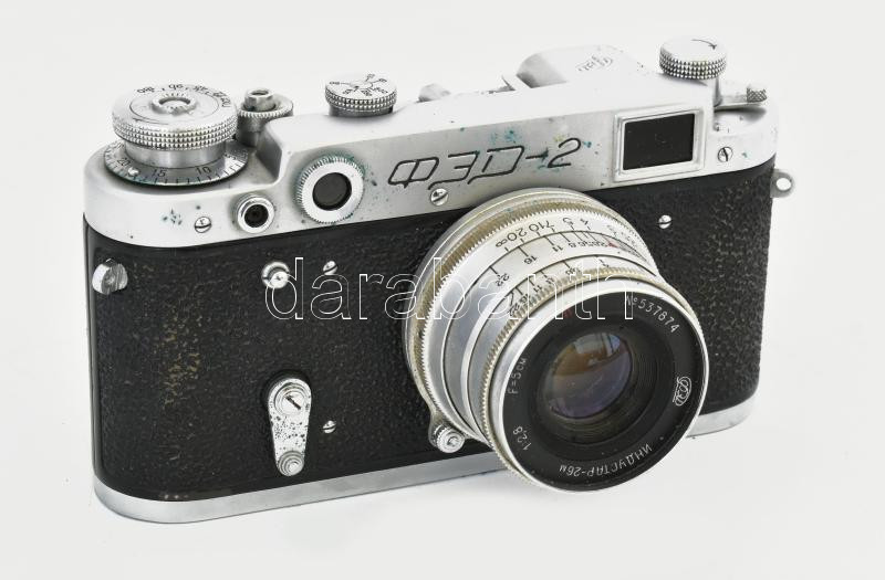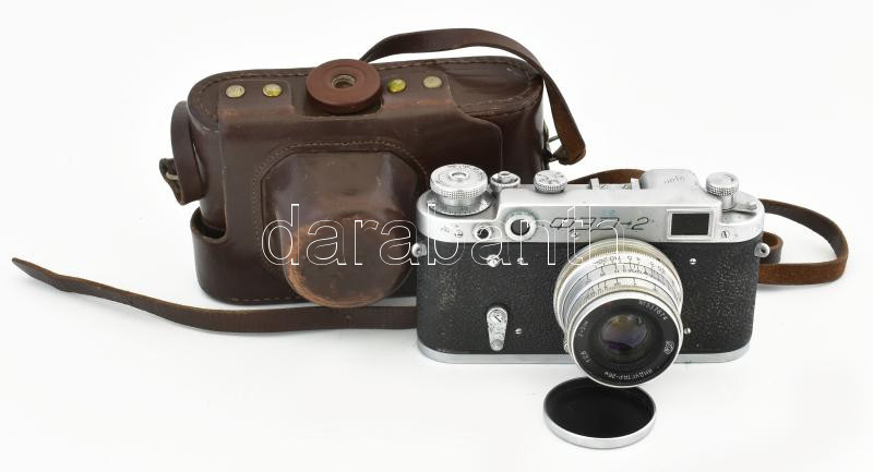 cca 1960 FED-2 szovjet fényképezőgép, Industar-26M 1:2,8/50 mm objektívvel, eredeti tokjában, működő állapotban / Vintage USSR camera in original case, in working condition