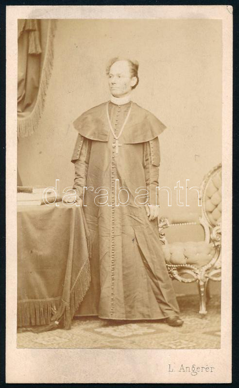 cca 1870-1880 Josip Juraj Strossmayer (1815-1905) német származású horvát püspök, a horvát Nemzeti Párt vezetője, az 1848/49-es szabadságharcban Jelačić Magyarország elleni hadjáratának támogatója; keményhátú fotó L. Angerer bécsi műterméből, vizitkártya, 10,5x6 cm / Josip Juraj Strossmayer Croatian politician, bishop, supporter of Jelačić's military campaign against Hungary during the Revolution of 1848/49; CDV photo from L. Angerer, Wien, 10.5x6 cm