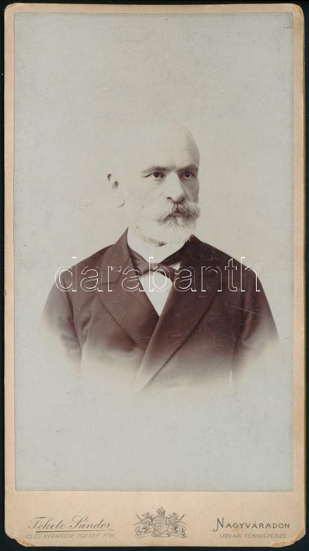 cca 1900 Idős úr portréja, keményhátú kabinetfotó Fekete Sándor cs. és kir. udvari fényképész nagyváradi műterméből, sarkai kissé sérültek, 20,5x11,5 cm