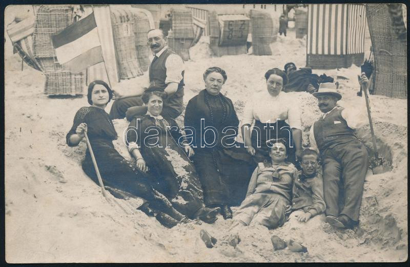 cca 1910 Nyaralók egy strandon, fotólap, 9×13 cm https://www.darabanth.com/de/446-Fernauktion/446.0/Fotografie/Foto~500023/cca-1910-Nyaralok-egy-strandon-fotolap-9C39713-cm~II2951273
