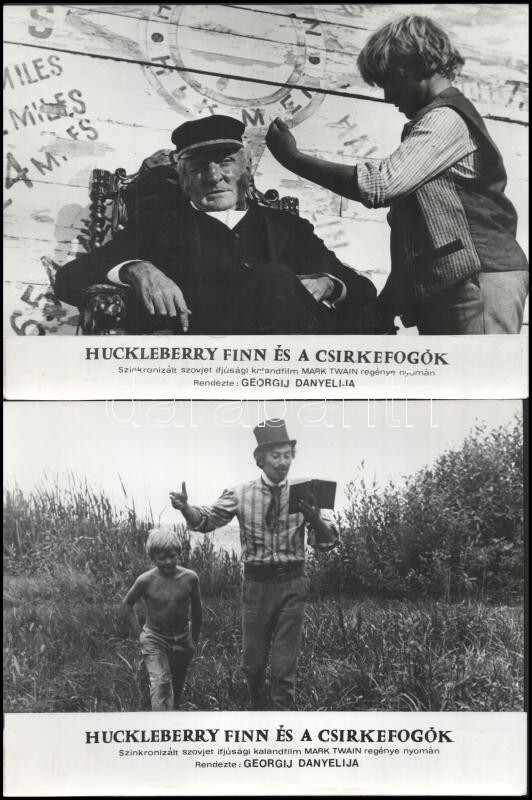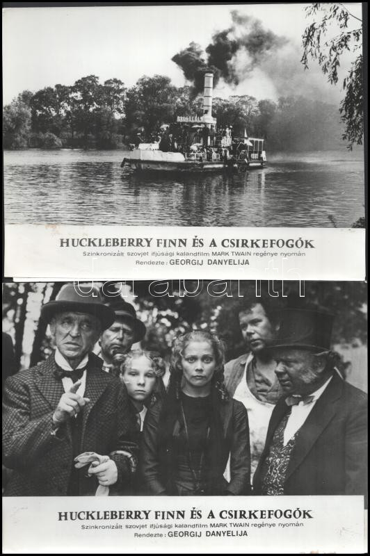 cca 1974 ,,Huckleberry Finn és a csirkefogók" című szovjet kalandfilm jelenetei és szereplői, 11 db vintage produkciós filmfotó ezüst zselatinos fotópapíron, a használatból eredő (esetleges) kisebb hibákkal, 18x24 cm