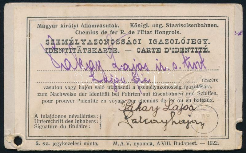1922 Magyar Királyi Államvasutak személyazonossági igazolójegy kisfiú ... https://www.darabanth.com/de/446-Fernauktion/446.0/Kunst-Dokumente-andere-Sammelgebiete/Dokument~500020/1922-Magyar-Kiralyi-Allamvasutak-szemelyazonossagi-igazolojegy-kisfiu-reszere~II2953943