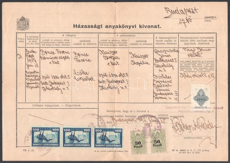 1946 Budapesti városi illetékbélyeges anyakönyvi kivonat https://www.darabanth.com/de/446-Fernauktion/446.0/Kunst-Dokumente-andere-Sammelgebiete/Dokument~500020/1946-Budapesti-varosi-illetekbelyeges-anyakonyvi-kivonat~II2947813