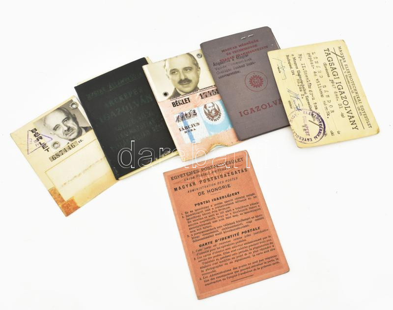 Beschreibung: cca 1947-1960 Fényképes igazolványok, 6 db, mind Lénárd Sándor névre