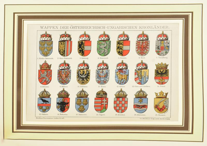 cca 1900 K. u. K. címerek, többek közt Magyarország címerével, nyomat ... https://www.darabanth.com/de/446-Fernauktion/446.0/Kunst-Dokumente-andere-Sammelgebiete/Drucksachen~1000006/cca-1900-K-u-K-cimerek-tobbek-kozt-Magyarorszag-cimerevel-nyomat-a-a-Brockhaus-lexikon-14~II2952442