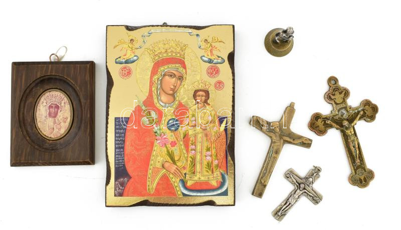 6 darabos kegytárgy tétel: préselt ikonkép, bronz és fém feszületek, s... https://www.darabanth.com/de/446-Fernauktion/446.0/Kunst-Dokumente-andere-Sammelgebiete/Flohmarkt~500014/6-darabos-kegytargy-tetel-preselt-ikonkep-bronz-es-fem-feszuletek-szep-allapotban~II2953110
