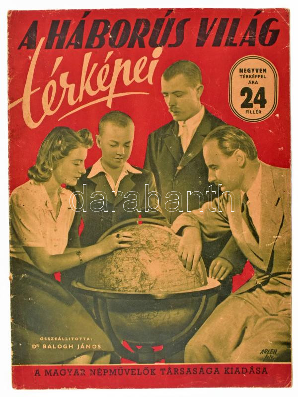 1942 A háborús világ térképei. Összeáll.: Dr. Balogh János. Bp., Magyar Népművelők Társasága, 10 sztl. lev. (40 térképpel). Kiadói tűzött papírkötés, kissé viseltes, kopottas címlappal, helyenként kissé foltos lapokkal. + 1939 Magyarország új északi határvidéke. Nyugati és keleti rész. (Kétoldalas térkép). A Pesti Hírlap kiadása. Kissé foltos, 57x41 cm