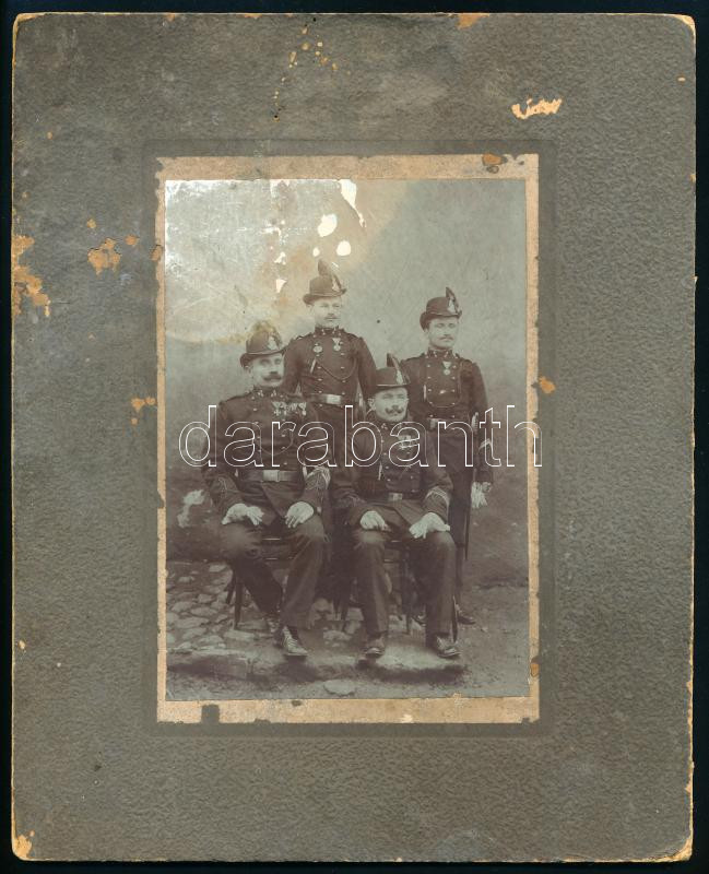 cca 1900 Csendőrök csoportképe, kartonra kasírozott fotó, sérült, 15,5... https://www.darabanth.com/de/446-Fernauktion/446.0/Kunst-Dokumente-andere-Sammelgebiete/Militaria~1000001/cca-1900-Csendorok-csoportkepe-kartonra-kasirozott-foto-serult-15-5C39710-5-cm~II2948346
