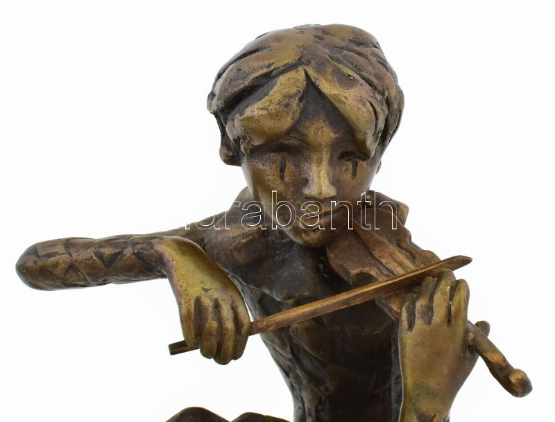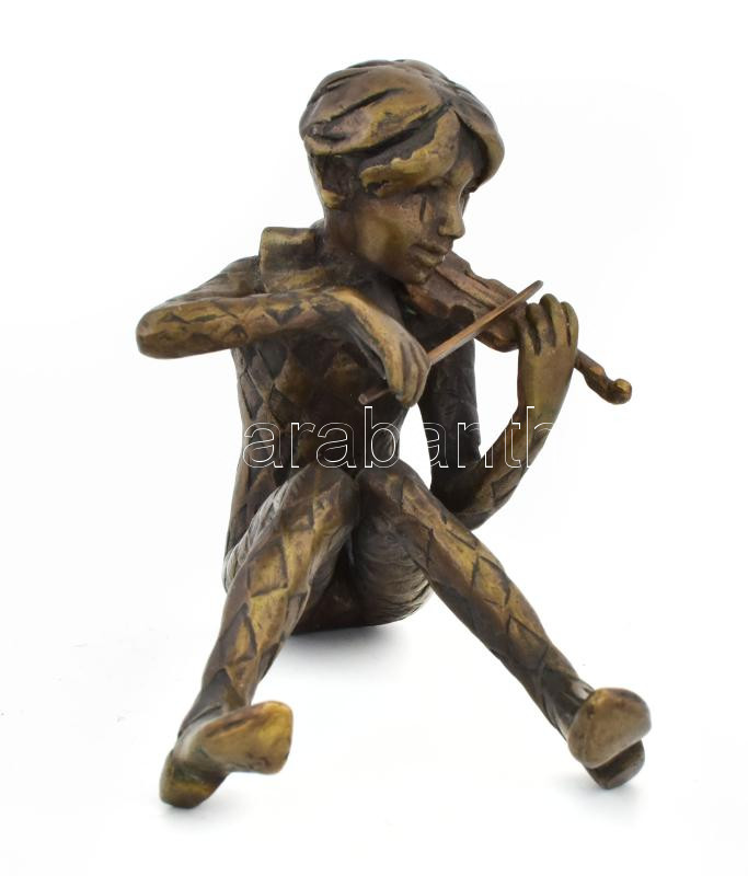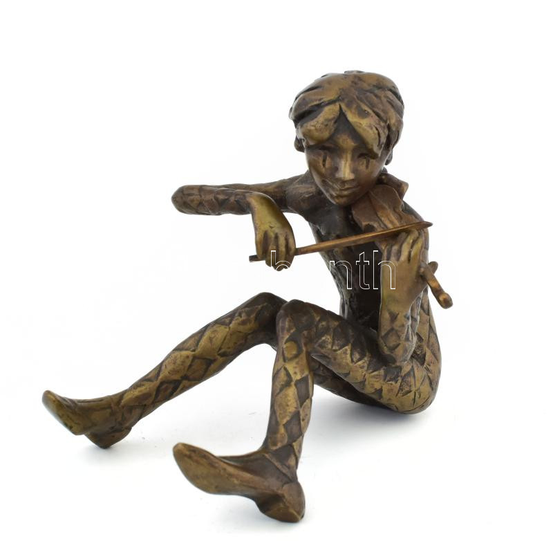 Beschreibung: Kutas László (1936-): Zenélő harlekin. Bronz szobor, jelzéssel, hibátlan, m: 12 cm