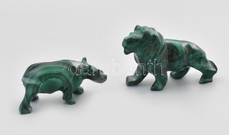 Beschreibung: Malachit oroszlán és víziló figura, h: 7-8 cm