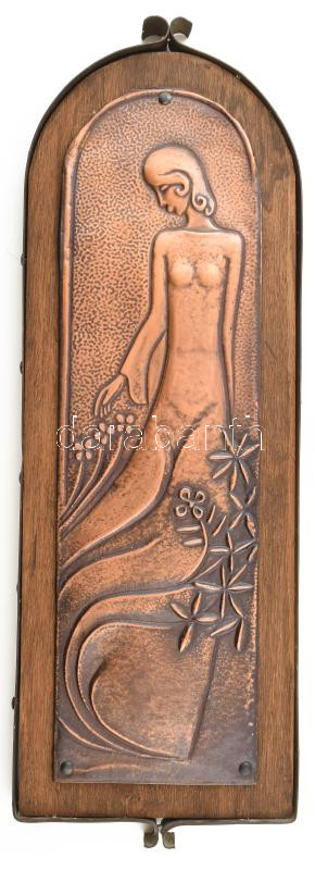 Beschreibung: Női alakos iparművész kép, bronz, fa, jelzés nélkül, 54x19 cm